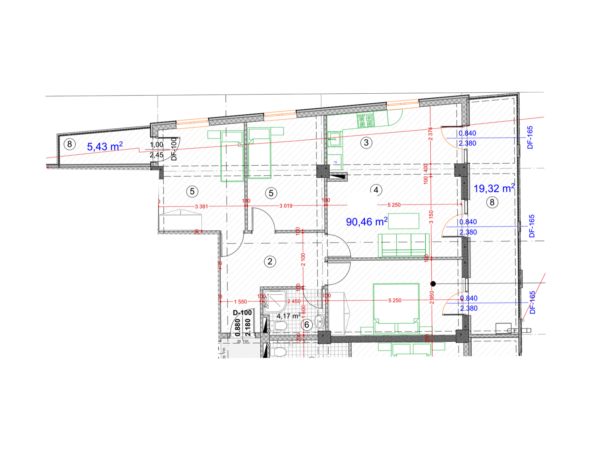 - საცხოვრებელი ფართი : 90.46 მ2