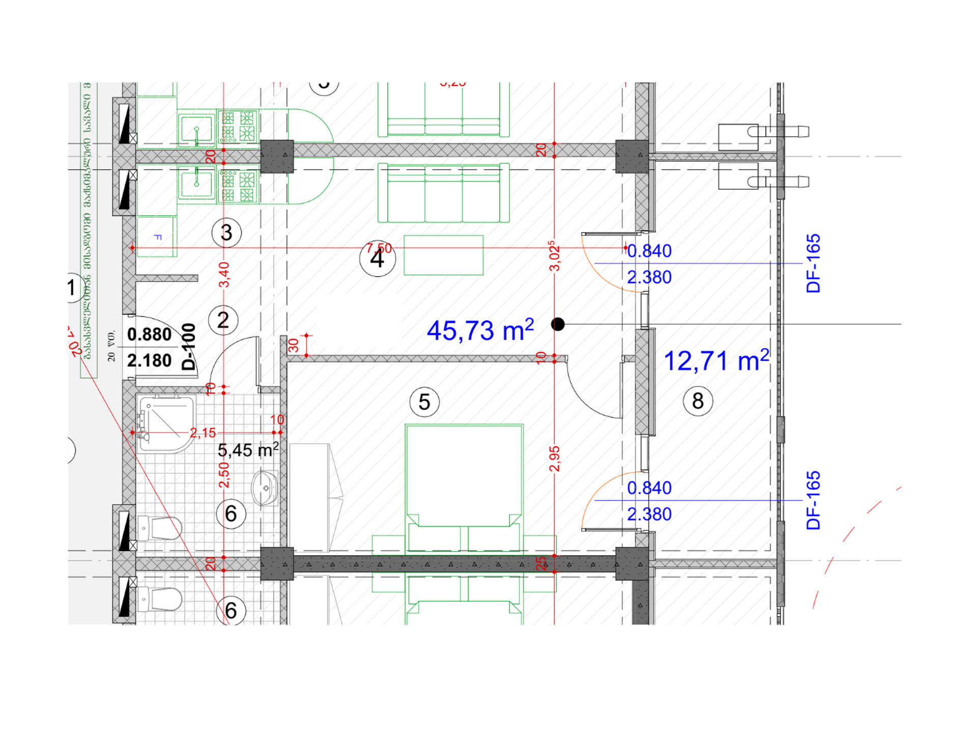 - საცხოვრებელი ფართი : 45.73 მ2