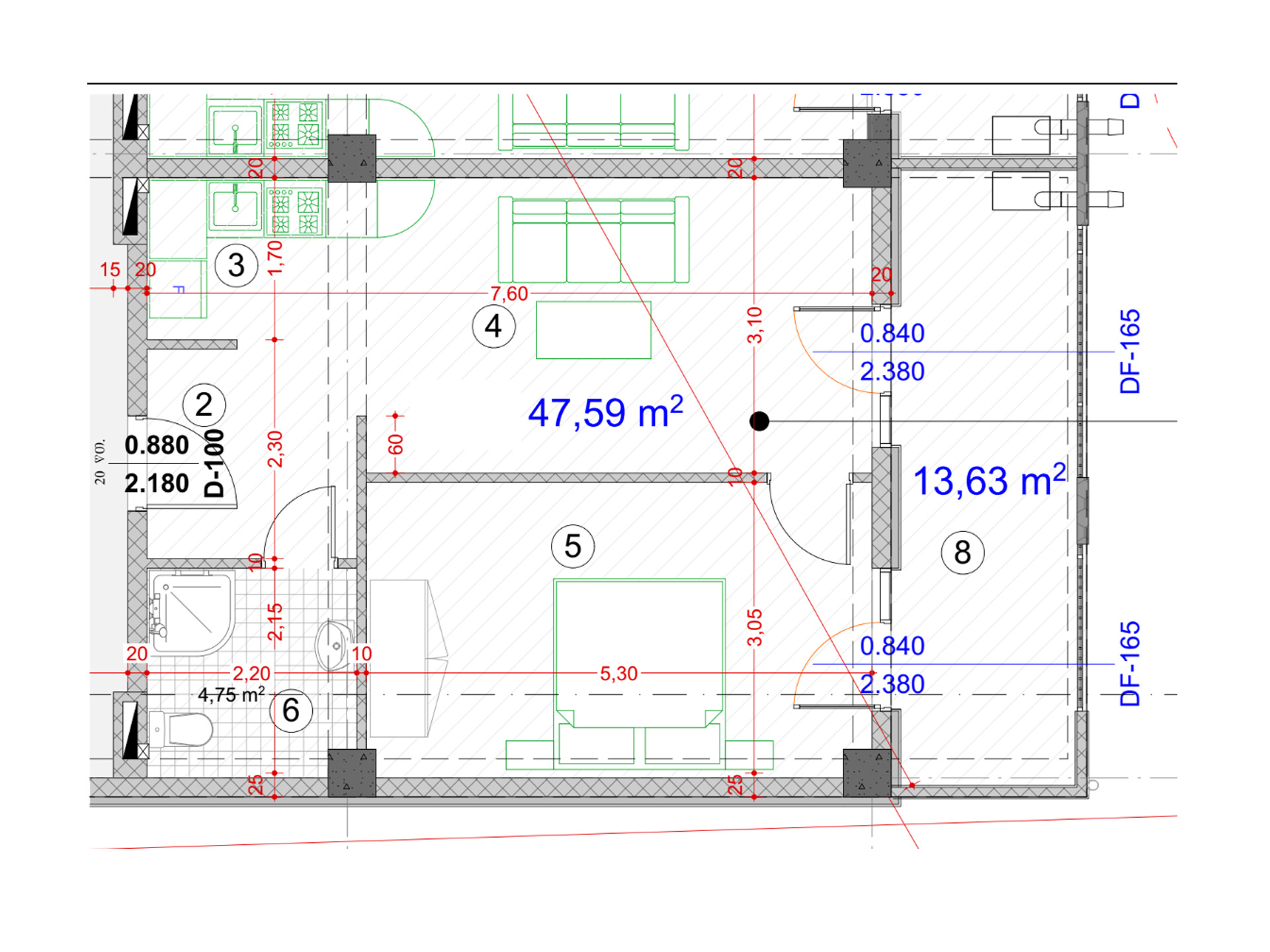 • საცხოვრებელი ფართი : 47.59 მ2